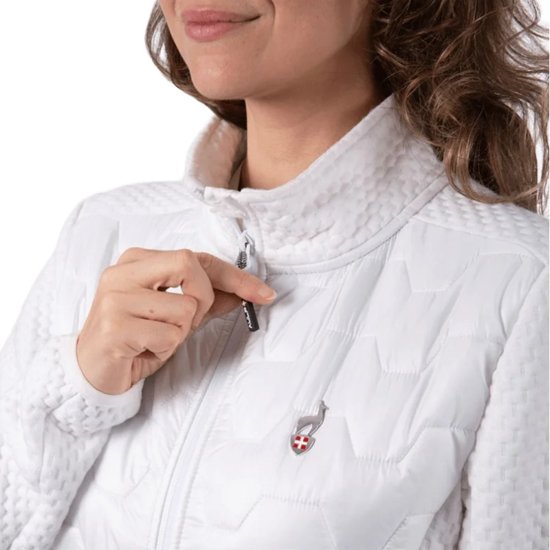 Материалът използван в якето е 2 вида - предната част е изработена от капитониран материал, който задържа топлината, а ръкавите и страничните панели са от еластична и дишаща материя, осигуряваща свобода на движение и отличен комфорт.
